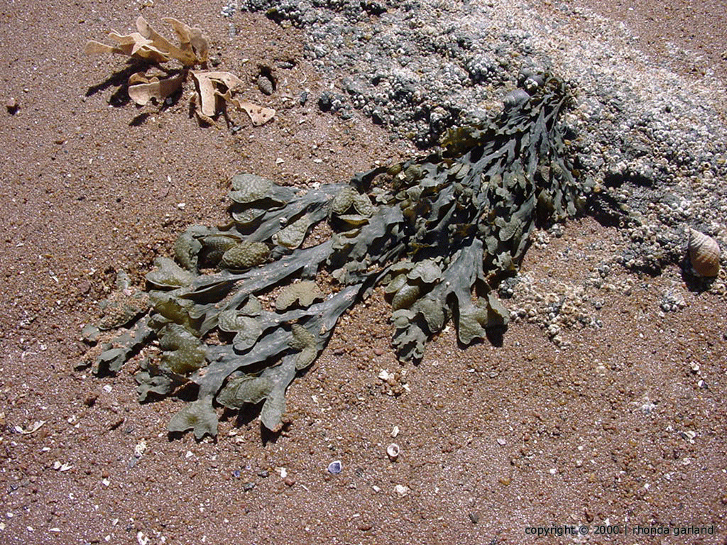 Rockweed (Fucus vesiculosus) - Another brown alga with blades that are flat with a prominent midrib and paired air bladders. Also a source of algin.