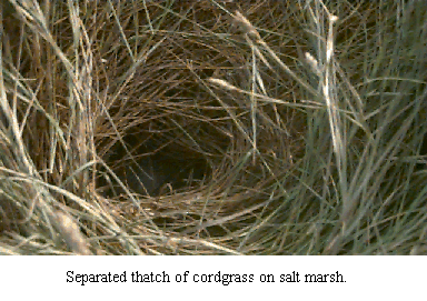 The animal community of the thatch is a mixture of terrestrial and aquatic species (e.g., plant hoppers and amphipods). The fact that the marshland is subjected to periods of flooding and drainage creates problems for both groups. The terrestrial species migrate to higher ground to avoid flooding and the aquatic ones must stay close to the ground surface to avoid desiccation at low tide. Although these animals live in close proximity to one another, the climate that these animals are exposed to may be very different. Different microclimates can be observed within the thatch. The relative humidity and temperature are both high close to the ground and decrease as the distance from the ground is increased.