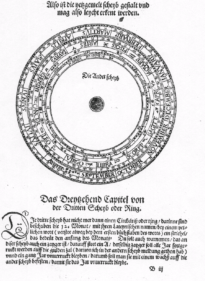 This represents the background to an instrument that was clearly never meant to be assembled in the book. This image appears on sig. B3r of Apian's Instrument Buch. The various parts one would attach to this background in order to construct the instrument it represents are printed on sigs. B3v and B4r, following. The images are integrated with the text in such a way as to make it clear, even to those of us who don't read c16th German, that they were never meant to be cut out and assembled elsewhere in the book.
