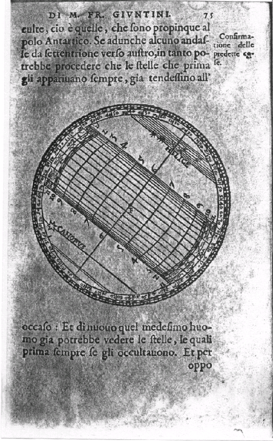 | In this image from Sig. E6r of the 1582 edition of Sacrobosco's "Book of the Earth" we see an image of an instrument virtually indistinguishable from the similar image in the 1563 Latin edition.